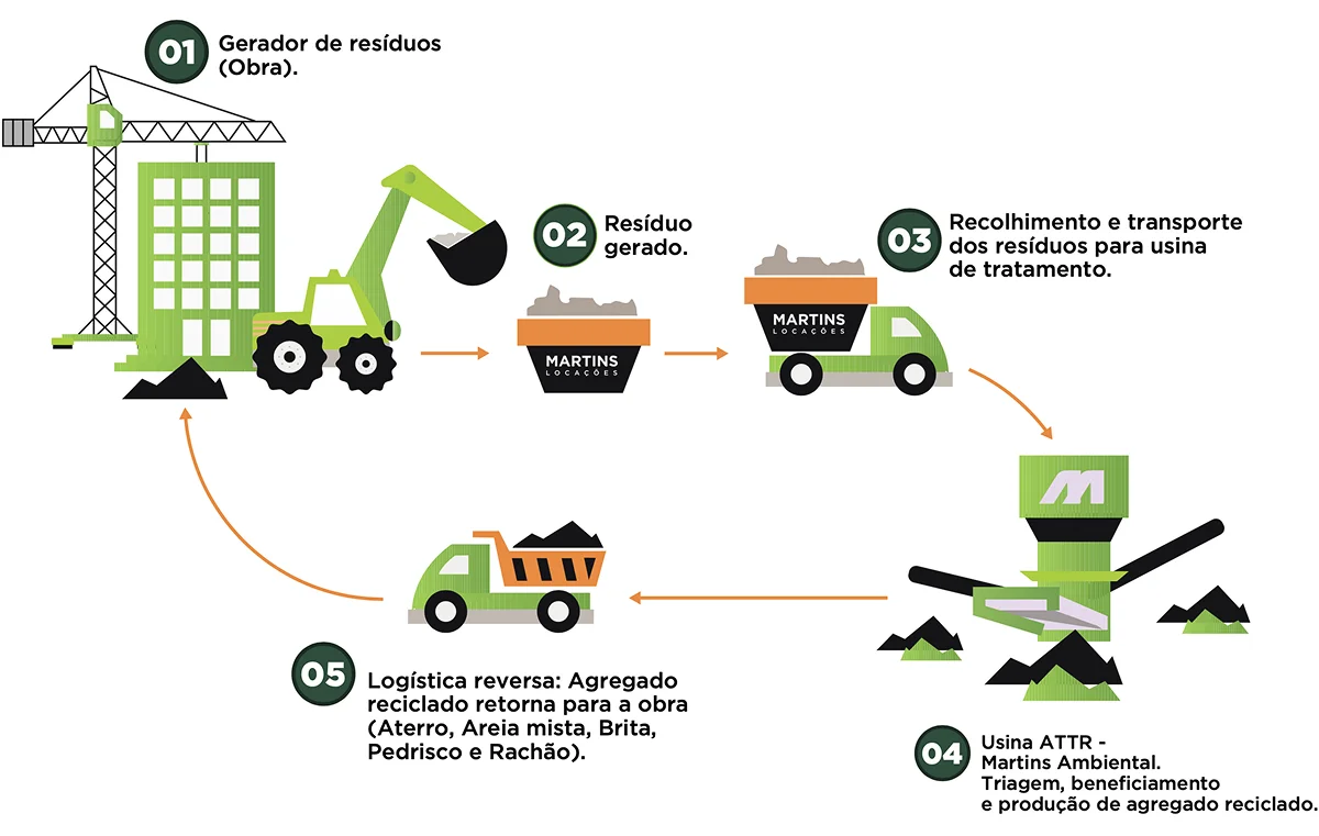 Área de Transbordo, Triagem e Reciclagem para transformar resíduos em agregados reciclados.