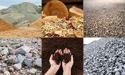 Areia, brita 1, pedrisco, rachão, compostagem e cavaco de madeira, todos reutilizáveis em novas construções.