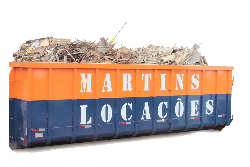 Materiais descartados são armazenados em caçambas.